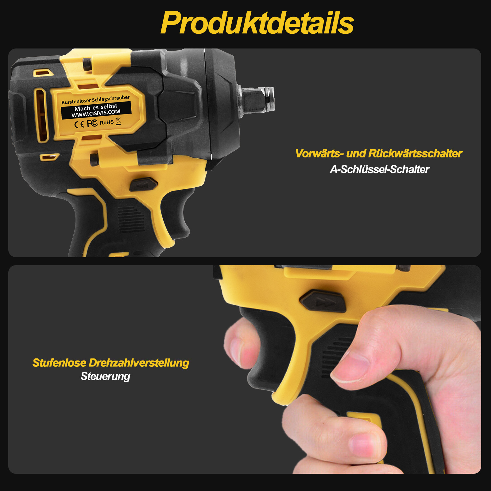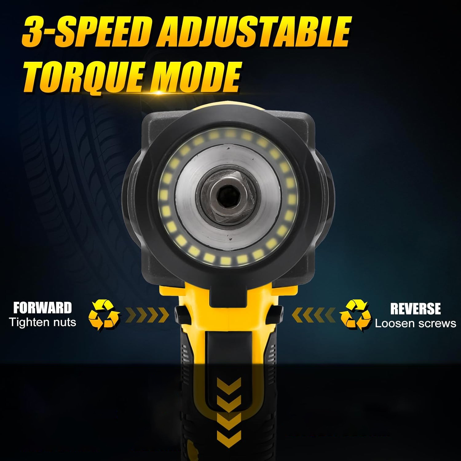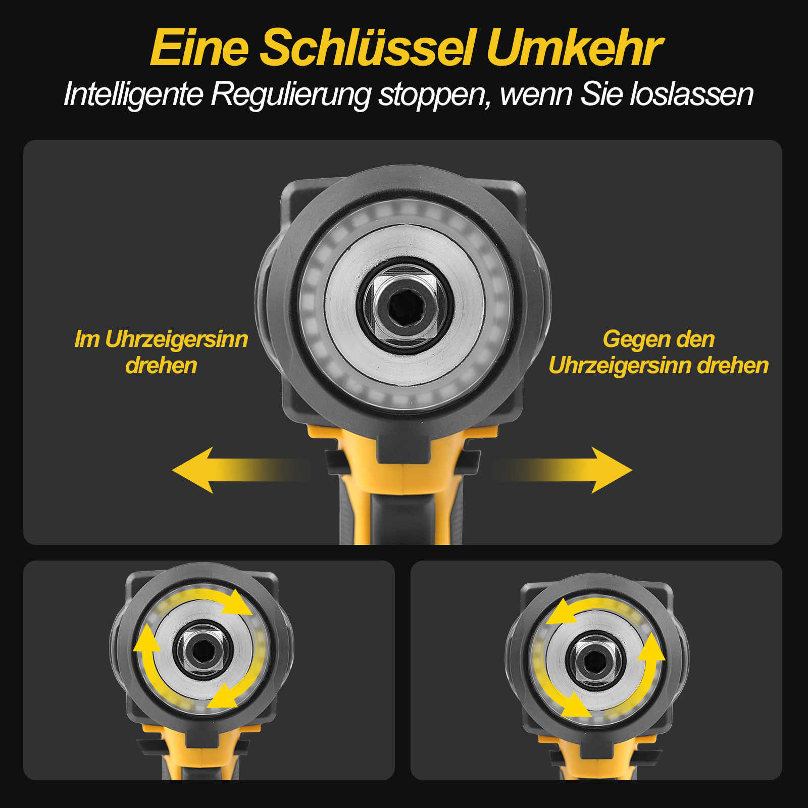 1000 NM Hohes Drehmoment - Dieser Akku-Schlagschrauber hat ein maximales Drehmoment von 1000 nm, ein hohes Drehmoment für schnelle Schraubarbeiten, mit LED-Beleuchtung für eine optimale Ausleuchtung, mit robuster 1/2"-Außenvierkant-Aufnahme